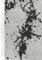 Nocaria asteroides. Frotis con tinción de Gram de cultivo en agar glucosa de Sabouraud x 1.000.