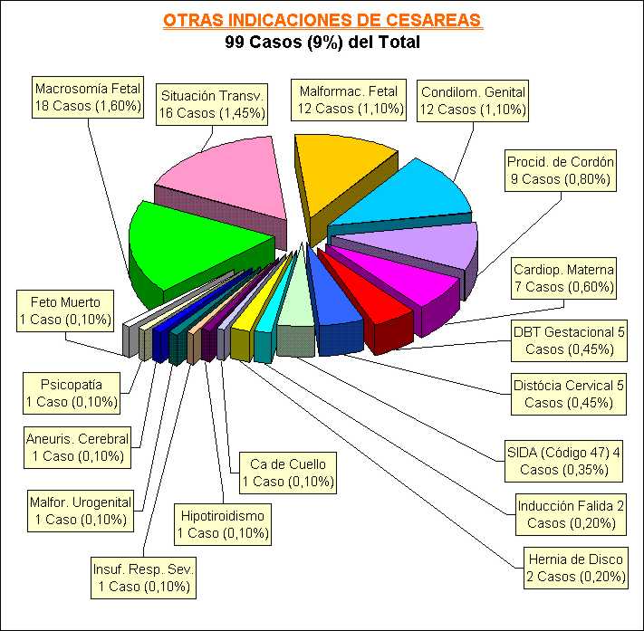 Las indicaciones que no presentan un valor porcentual significativo fueron incluidas dentro del grupo "Otras Indicaciones de Cesáreas". (Ver Gráfico 3 y Tabla 2)
