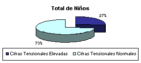 Tomando en cuenta el total de niños (402), que incluyen los tres grupos, en el 24% (96 niños) se obtuvo valores tensionales superiores a los normales para su edad y sexo. (Gráfico N° 4).