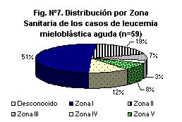 La mayor cantidad de pacientes, tanto con LMA como con LLA, provinieron de las Zonas Sanitarias I y II. La particular distribución geográfica de las consultas pudo deberse a la mayor densidad poblacional de las Zonas Sanitarias I y II, como así también a la accesibilidad dada por la cercanía y la facilidad de llegada al hospital de referencia.