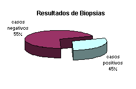 El 44% de las biopsias pediátricas fueron positivas, indica que aproximadamente 1 de cada 2 niños que se realizó biopsia, padecía la enfermedad.